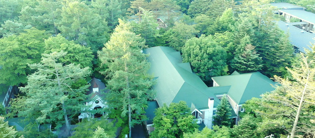 文明開化の時代に日本人の手により建築された、純西洋建築の重要文化財・旧三笠ホテルをモチーフに、1982年、旧軽井沢の静かな森に音羽ノ森は生まれました。