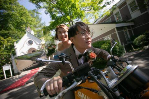 「音羽ノ森の世界観が素敵で、料理は美味しく、こだわりの演出もできそう」と会場を決定。私たちは”サイドカーの演出”を考えていて、オリジナリティのある結婚式を希望していました。いくつか会場見学をしましたが、なかなか理想の式場がなく諦めようかなと思っていた時に「ホテル音羽ノ森」を知りました。挙式後のセレモニーで念願の”サイドカーで空き缶をカラカラとひっぱりながら退場する演出”を叶えることができました。